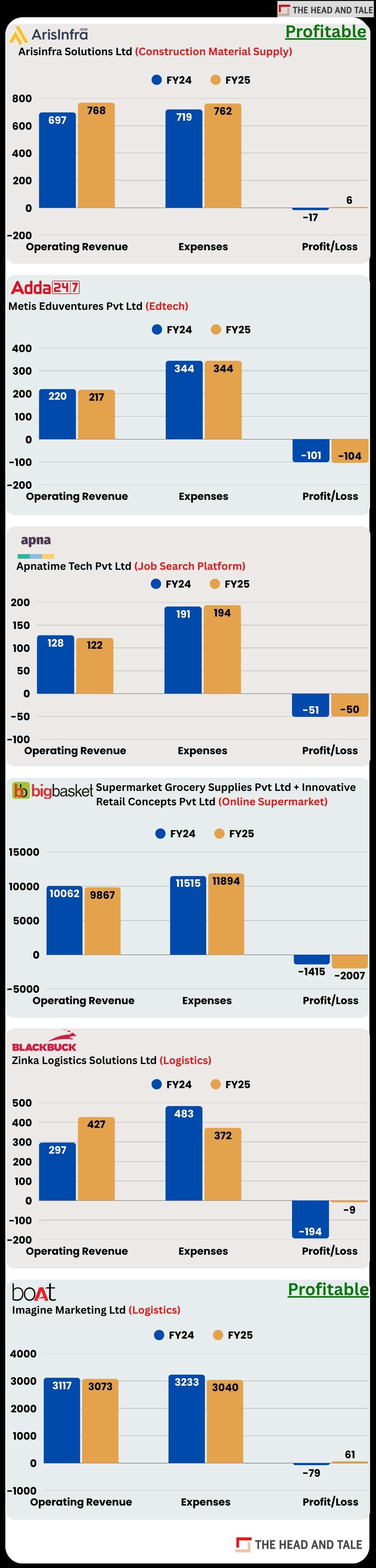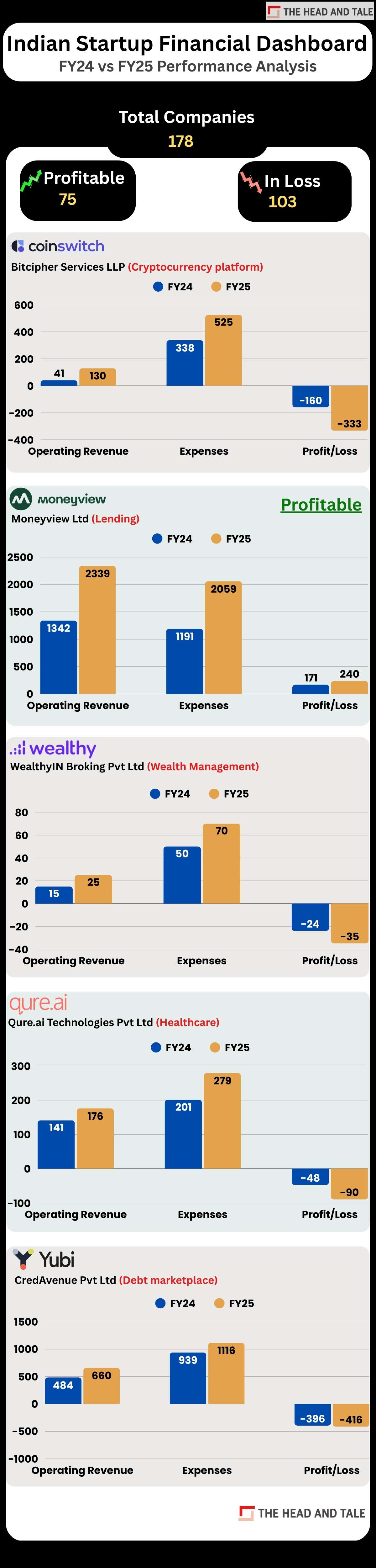 As we close 2025, The Head and Tale brings together the financials of 178 startups in one single lens. The list includes FY24 and FY25 revenue, expenses, and profit/loss numbers. The data shows close to 80 companies have over Rs 1,000 crore in revenue, while 75 companies reported profits.