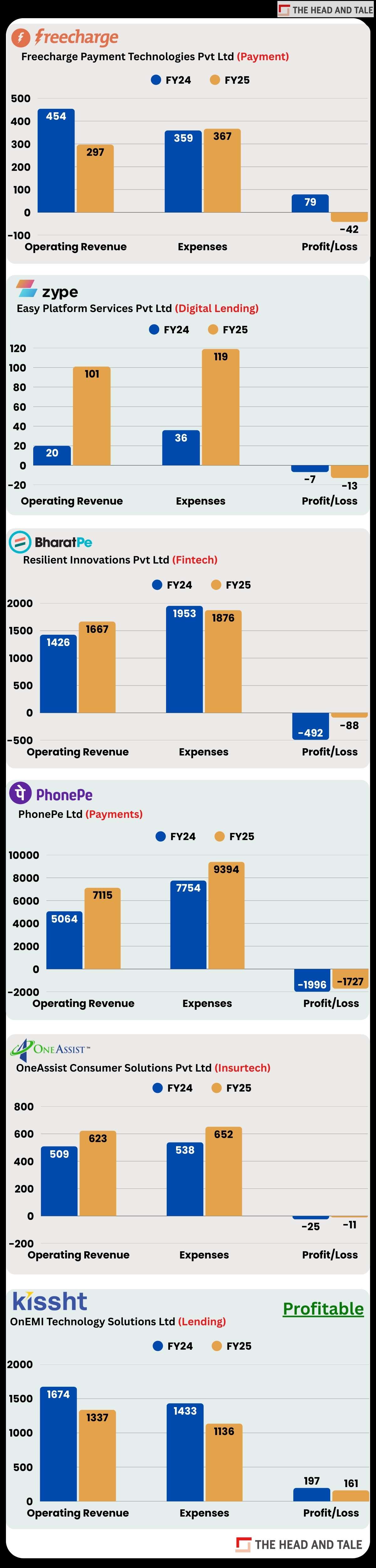 Freecharge, Zype, BharatPe, PhonePe, OneAssist, Kissht π