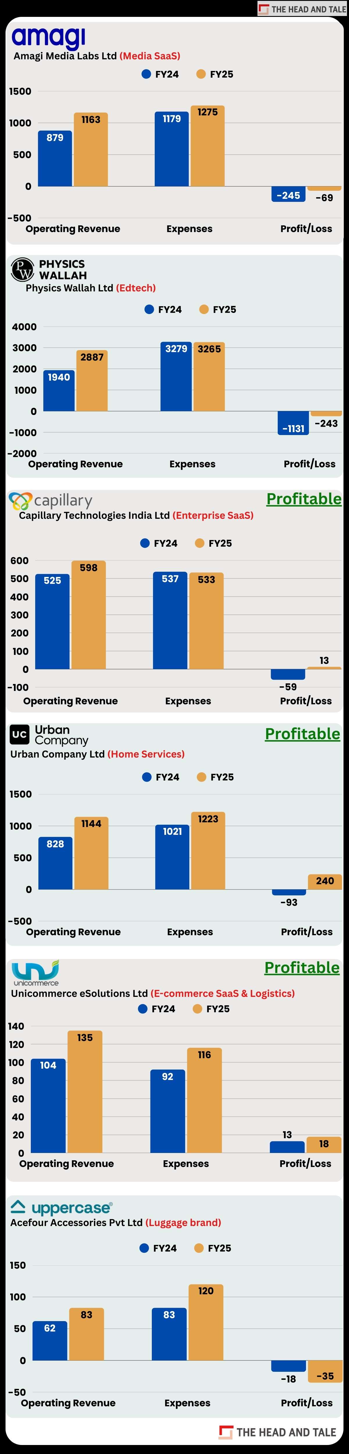 Amagi, PhysicsWallah, Capillary Technologies, Urban Company, Unicommerce, Uppercase π