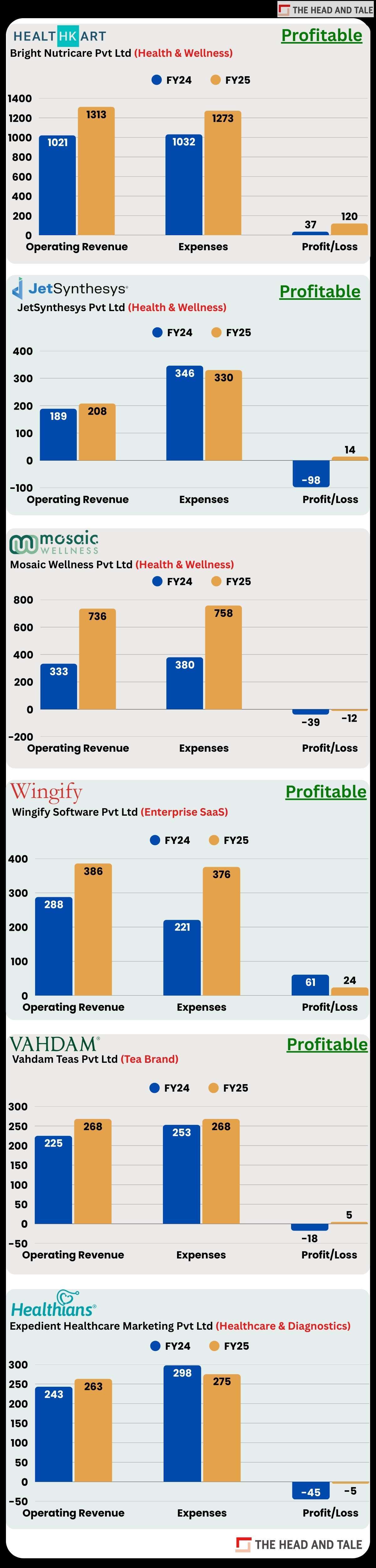 Healthkart, Jetsynthesys, Mosaic Wellness, Wingify, Vahdam, Healthians π