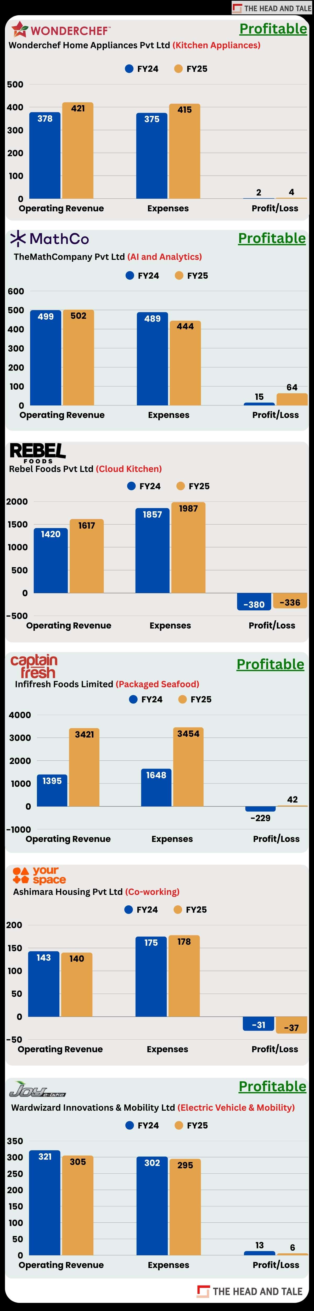 Wonderchef, MathCo, Rebel Foods (Faasos and Behrouz Biryani brands owner), Captain Fresh, YourSpace, Joy e-bikes π