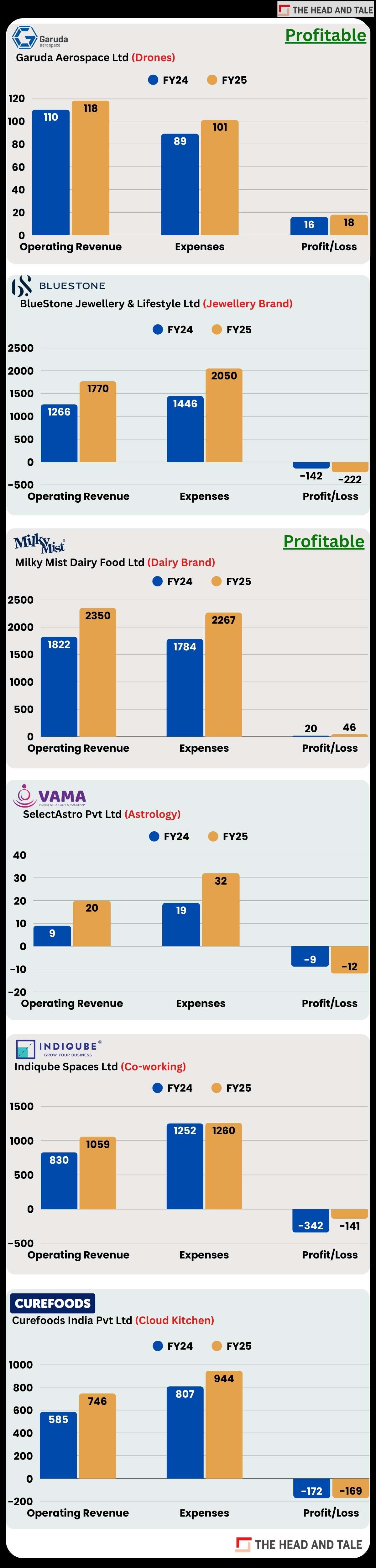 Garuda Aerospace, Bluestone, MilkyMist, Vama (SelectAstro), Indiqube, Curefoods π
