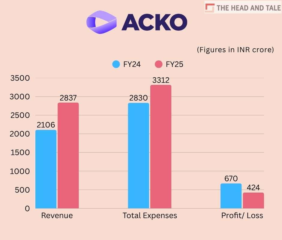 Acko's net loss narrowed to Rs 424.4 crore in FY25 from Rs 669.9 crore in the previous fiscal.