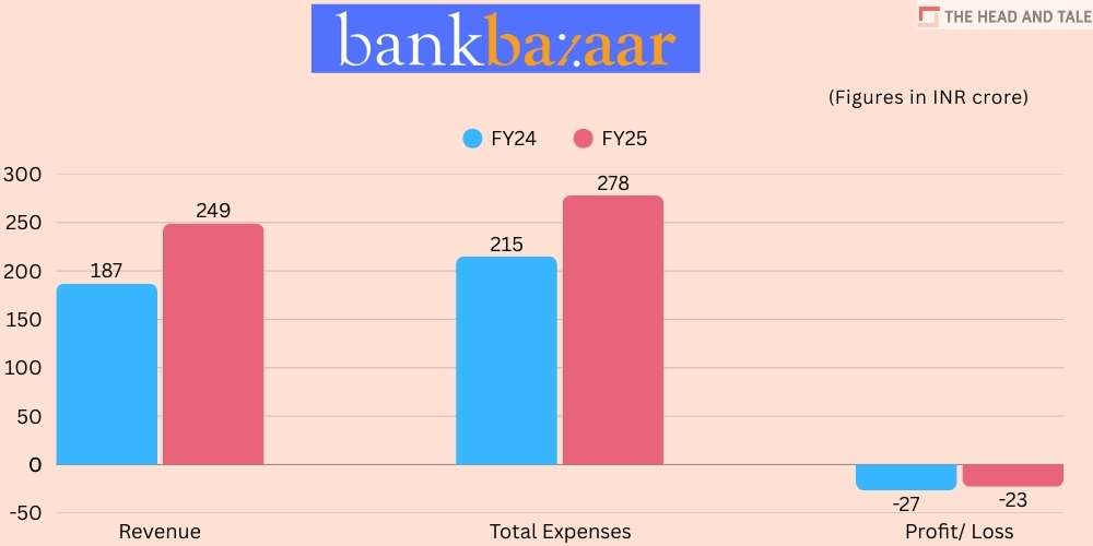 Total expenses of BankBazaar grew to Rs 278 crore during the fiscal as compared to Rs 215 crore in FY24.