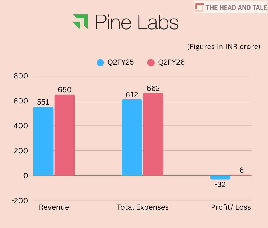 Total expenses of Pine Labs grew to Rs 662 crore during the quarter as compared to Rs 613 crore in Q2 FY25.