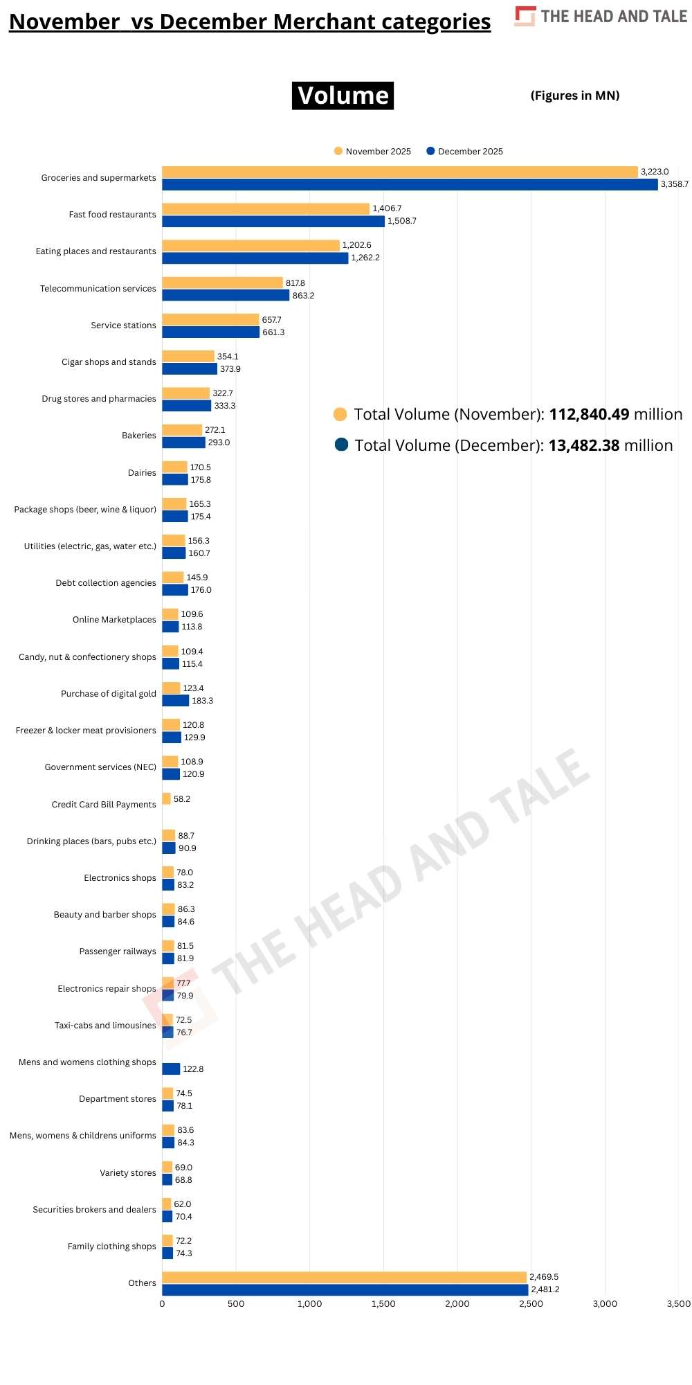 Groceries and supermarkets, which accounts for the largest share, recorded over 3,358.74 million transactions worth Rs 74,921.67 crore in December versus 3,222.99 million transactions worth Rs 71,129.56 crore in the previous month.