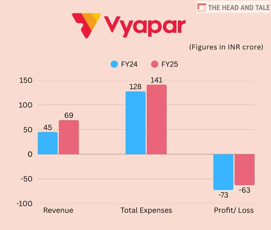 Total expenses of Vyapar grew to Rs 141 crore during the fiscal as compared to Rs 127.5 crore in FY24.